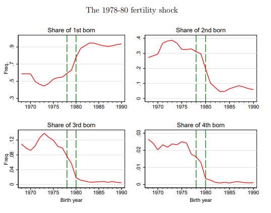 So what happened in the 1980s? For my argument to hold—that the One-Child Policy significantly reduced the population—we have to imagine quite a strange counterfactual. We have to imagine that, if China had liberalised its family planning policy in 1980, China’s birth rate would have temporarily rebounded to around 4 births per woman before beginning its “natural decline” in the mid-1980s.