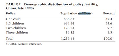 Eager to prove their free-world credentials, many intellectuals inside and outside of China decided to provide a counterpoint, claiming that as well as being unnecessary and inhumane, it was also ineffective. For example, a widely-cited study by Feng, Cai, and Gu (2013) tries to awkwardly thread the needle of “terrible and ineffective”, arguing that “the demographic effects of the one-child policy in reducing population growth, …can at best be very small, [but] the policy’s social effect in depriving a large proportion of Chinese families of a second child is enormous.”